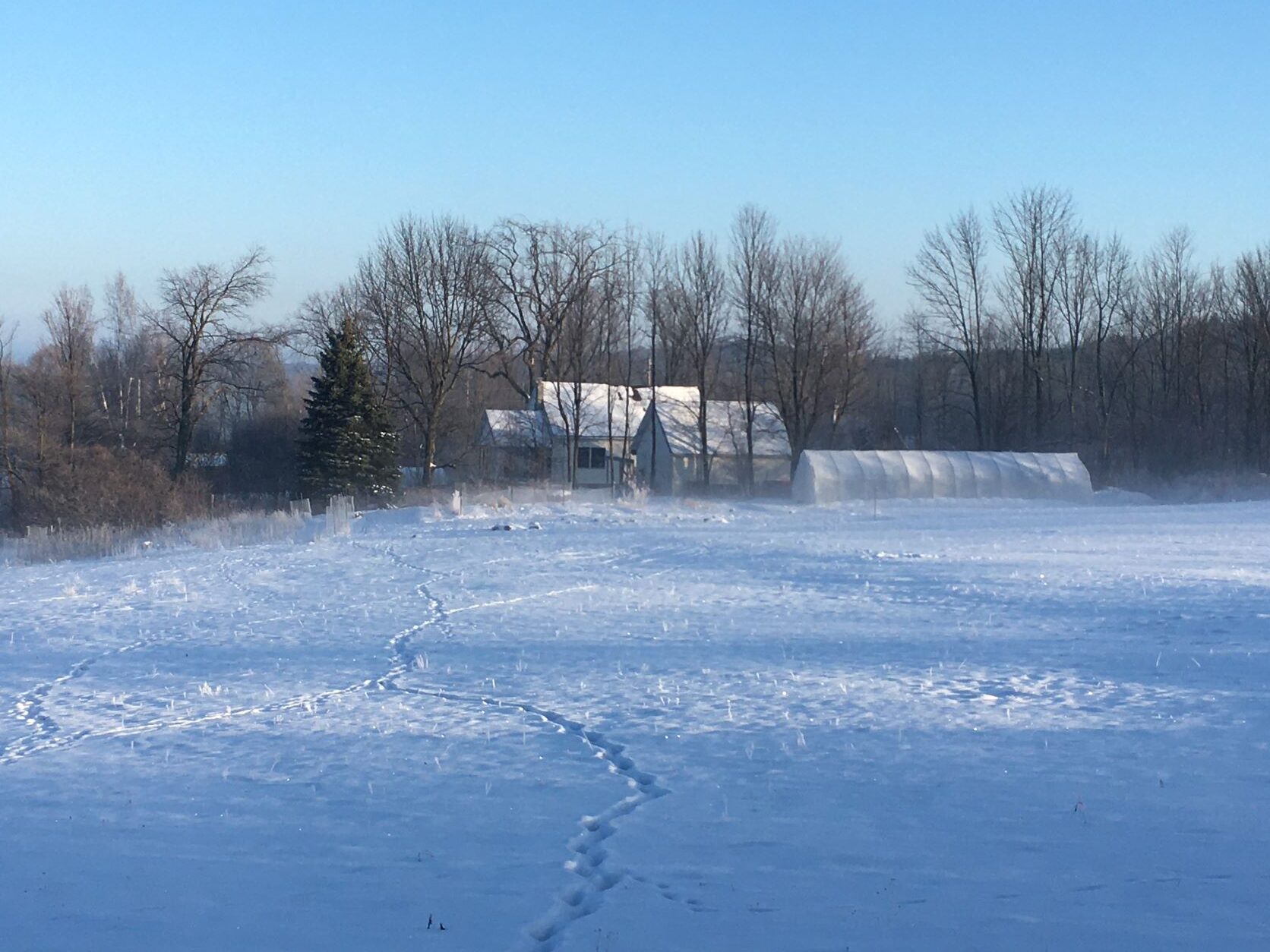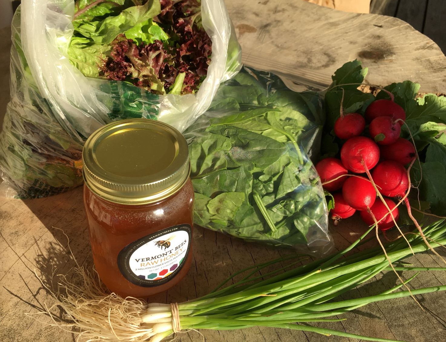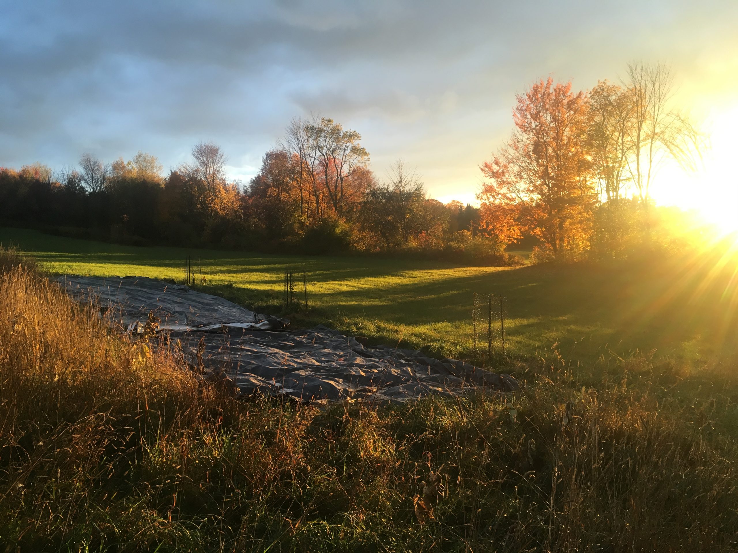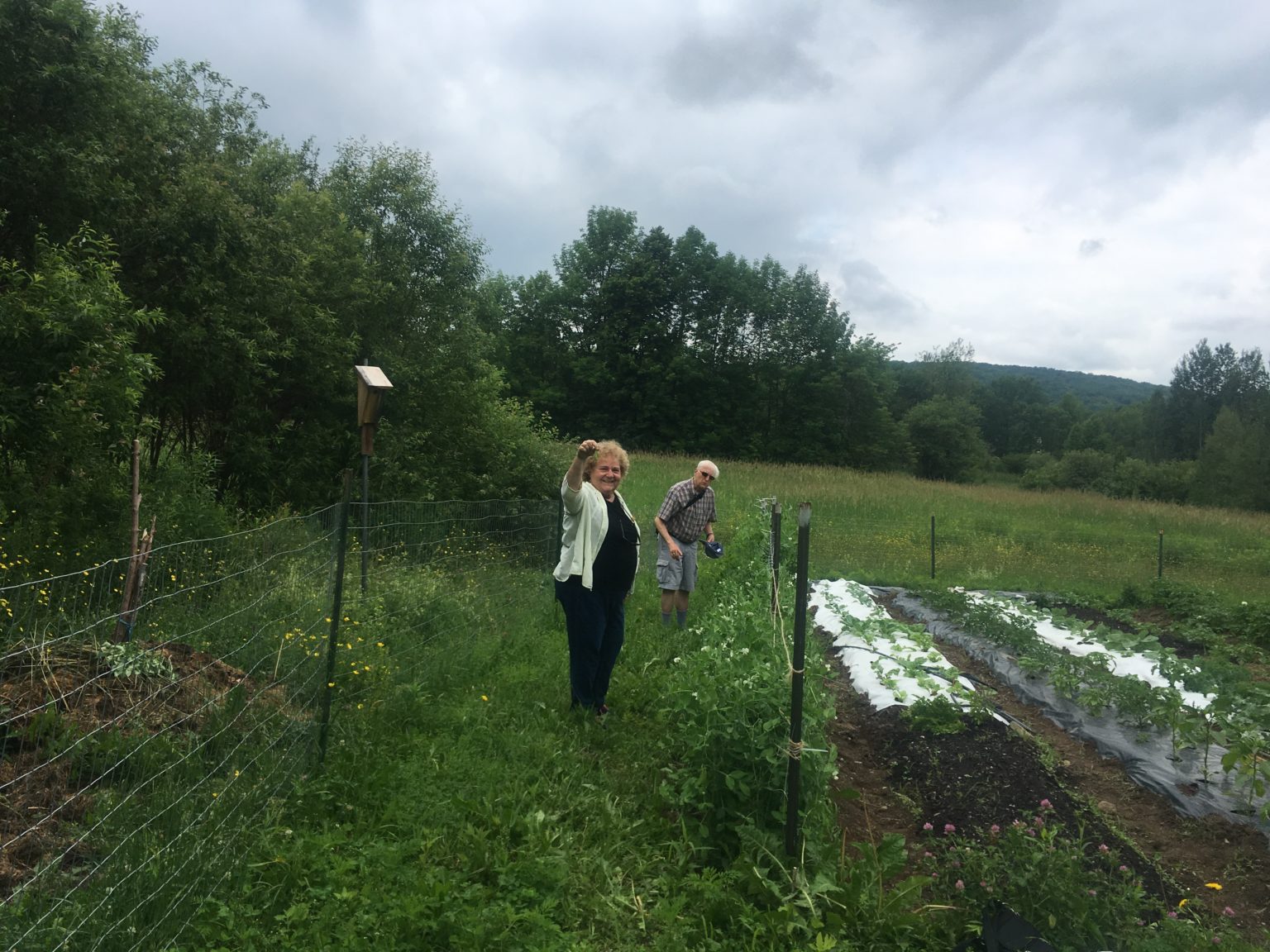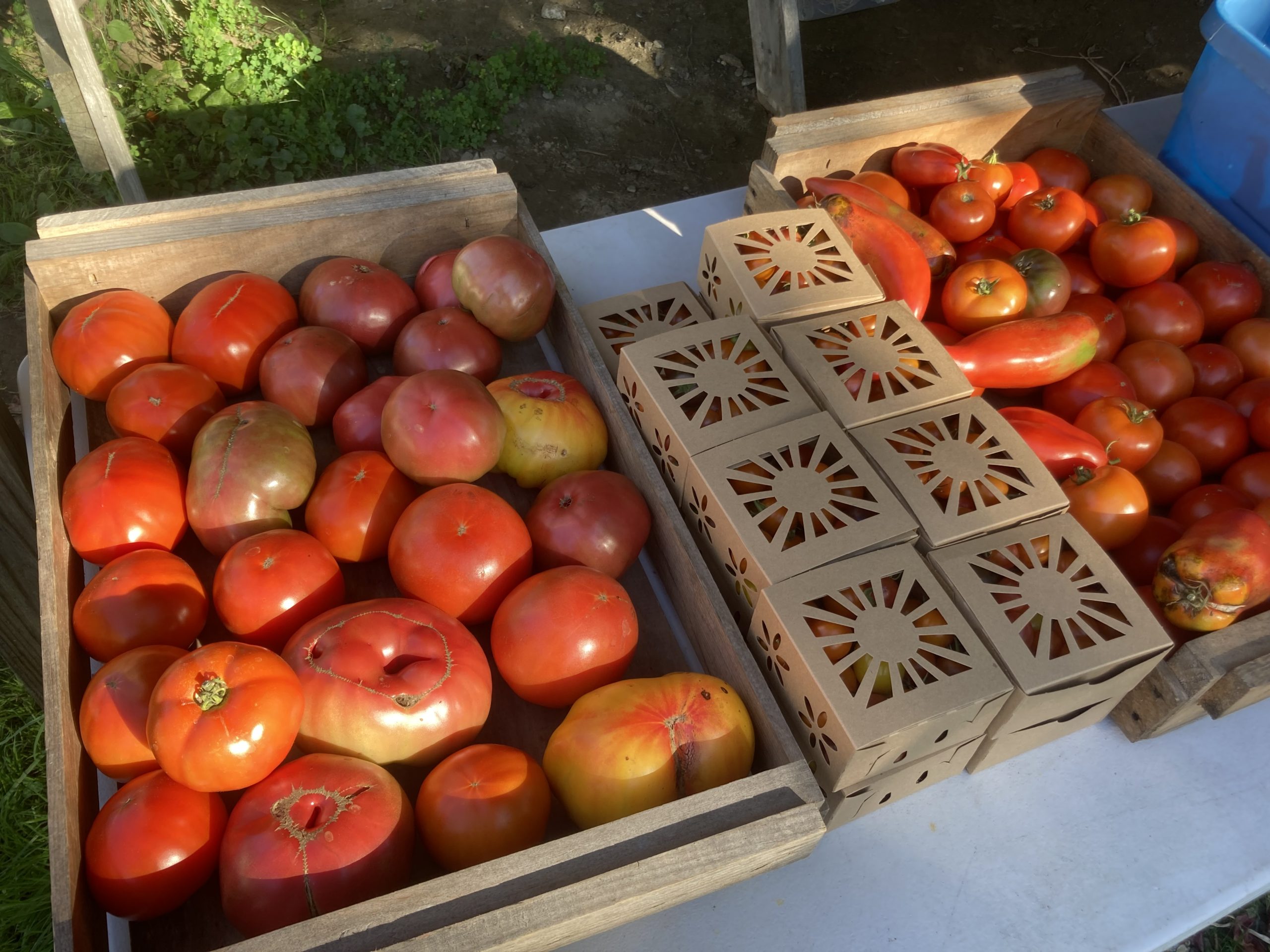 In 2021 we almost doubled our number of CSA members. We also sold salad mix and tomatoes at the Westford Country Store and organized a once a month farmers’ market on the Westford Common. The addition of a 50 foot Farmer’s Friend caterpillar tunnel was a huge benefit for increased seed starting space and tomato growing. At one point in June the tomatoes, snap peas, and lettuce were all growing together in the same greenhouse bed, making for quite a jungle. Other farm improvements included a shed for washing greens under and a walk-in cooler that was completed in the fall. Many CSA members enjoyed picking their own bouquets from the flower patch. Some people signed up for additional locally made products including sourdough bread, eggs, honey, mushrooms, and more, which got rave reviews. This season came together with many helping hands: friends helping put up the hoop house, a friend expanding/regrading our driveway with his tractor, work share members chipping in at planting and harvest pinch points, weekly help from a young farm apprentice, sign painting by another artistic young person, lots of picking help by Amanda, and of course rodent control by Mr. Myron.