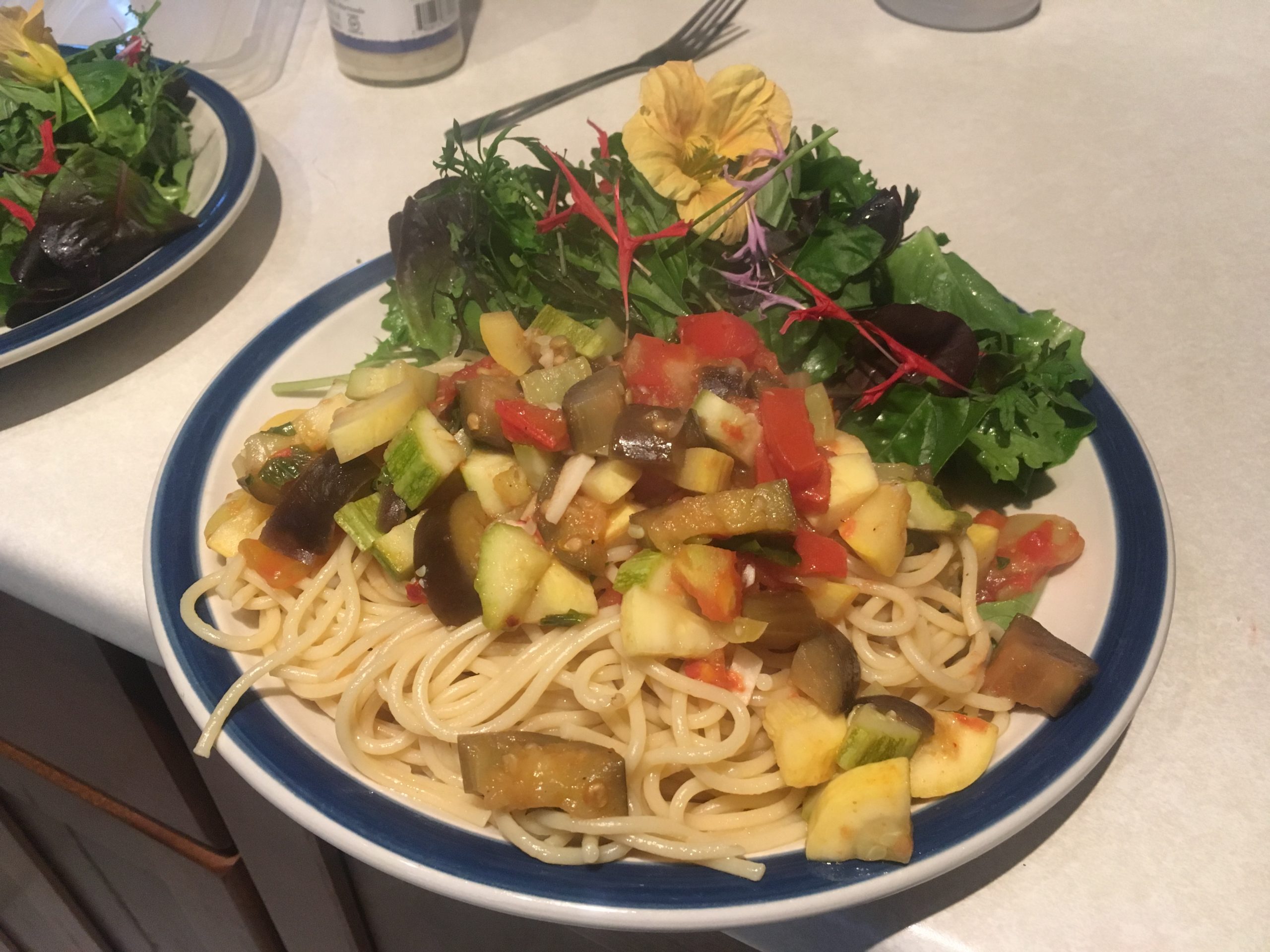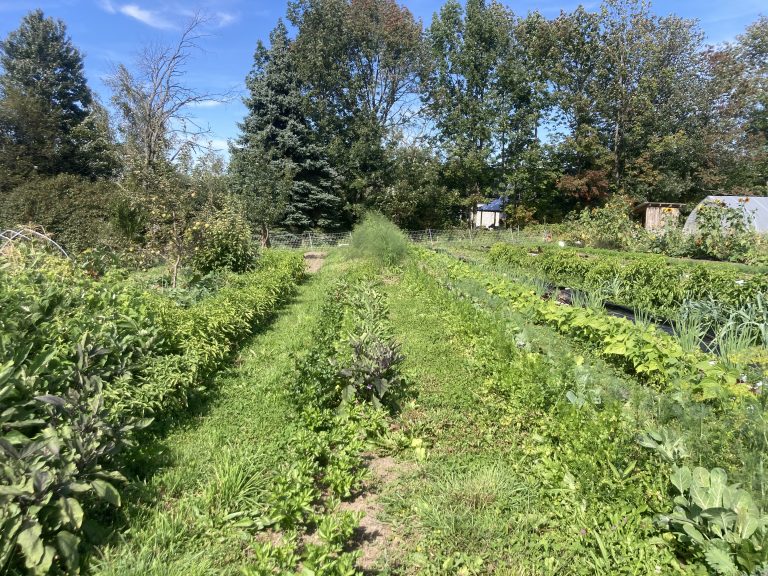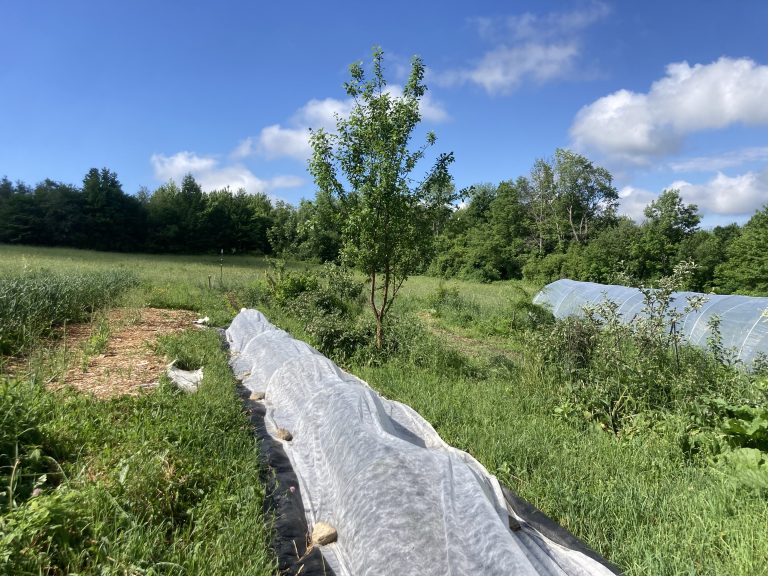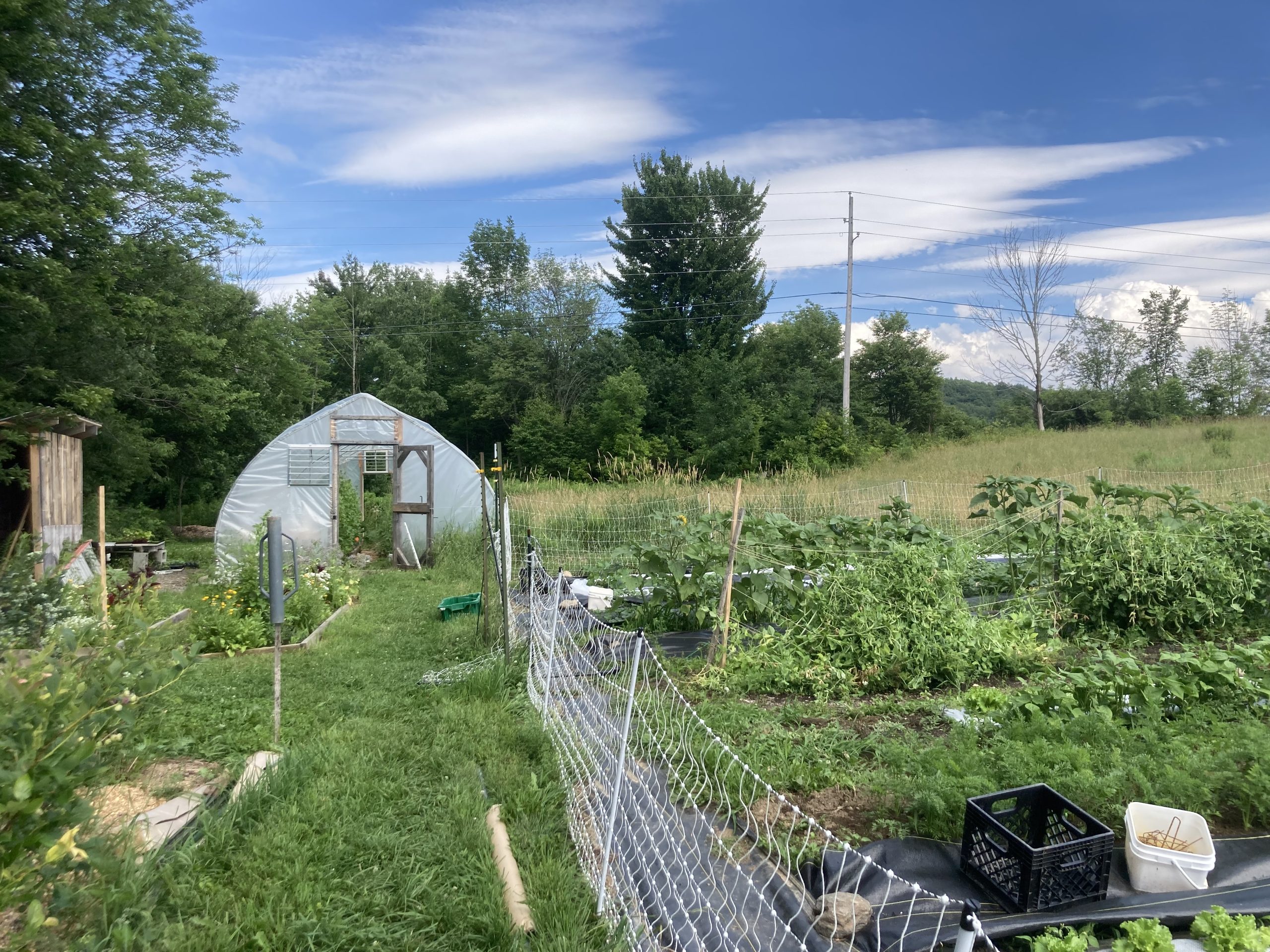 We had 25 CSA members in 2024 and sold produce at a couple of Westford Farmers Markets. Most crops did well for us, but the highlights were cucumbers, melons, peas, lettuce, eggplant, and garlic. We also had an exceptional fruit year peaches, pears, plums, apples, and berries. Several of the trees planted in 2019 and 2020 had their first fruit set. An investment that we put to good use in 2024 was the rotary plow for our BCS tractor, which helped us make permanent raised beds to improve drainage. We also experimented with living pathways sown to clover. Living pathways are an appealing pathway management and soil building technique, but we will need to do more trials to see if it makes sense in our context.