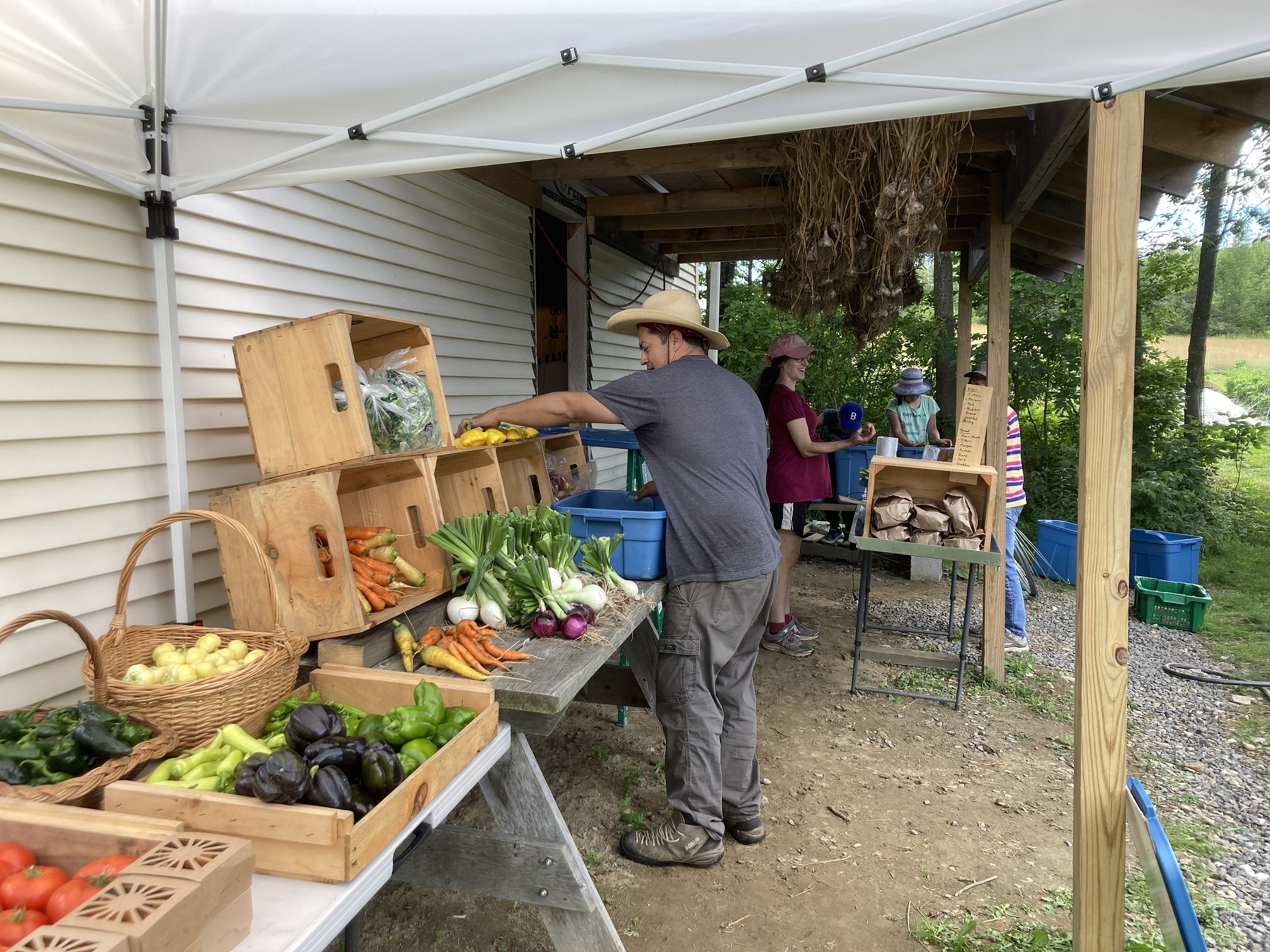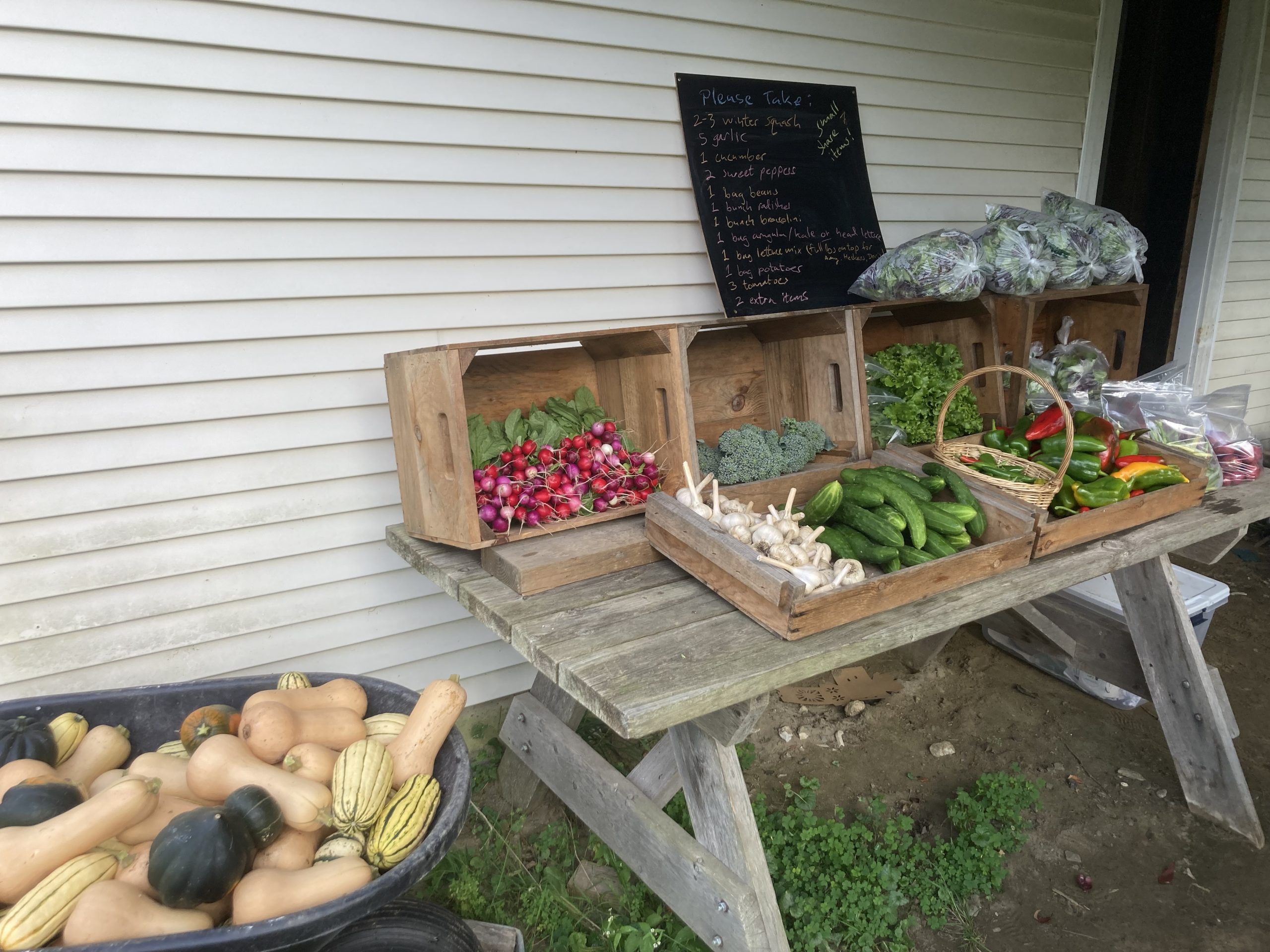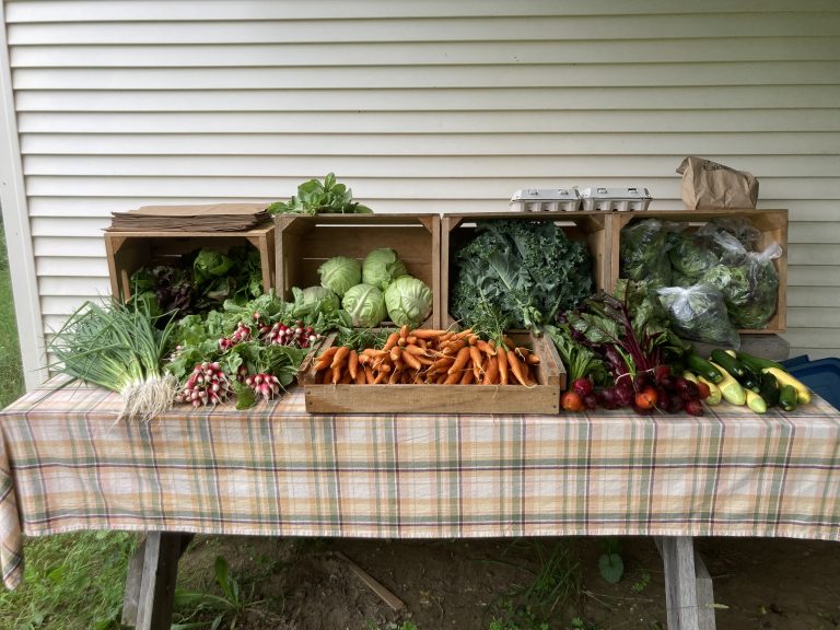 Because the cooler was completed in the fall, we won’t experience it’s benefits until the 2022 season. However, the cooler has already come in handy storing gleaned produce from local farms as part of Peter’s other job. This photo shows boxes of gleaned cabbage and bags of carrots all destined for food pantries and charitable food sites in northwest Vermont. Having our own cooler to store gleaned produce as well as Cat’s Meow veggies often saves Peter up to an hour of driving at the start or end of a day. The cooler will also make it easier for Cat’s Meow Farm to contribute produce to the charitable food system. In 2021 Cat’s Meow Farm donated 375 pounds to local food pantries including the Westford Food Shelf.